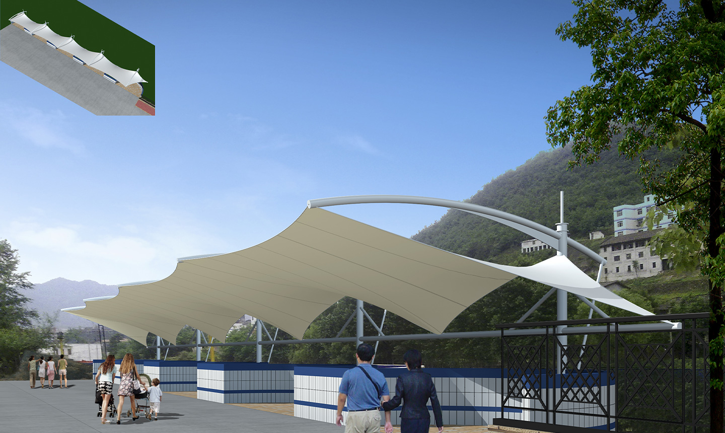 膜結構景觀棚輕巧、別致的造型在停車場及候車廳的建設中起到重要作用,除了滿足防風雨、防日曬等基本功能外,并有較好的標識招攬效果,展現了人們個性化的一面。如果你想有陰影覆蓋或擴大你的建筑特征,在短時間內改變,除了木頭,石頭,金屬和玻璃材料的使用,另一種合適的材料是膜結構景觀棚)。用PVC和PTFE膜,因此他們可以以低成本設計場館的屋頂結構所需的形狀,這些材料可以被成功地用于幾乎所有的景觀或建筑環境,而且不受任何天氣條件的影響。膜結構景觀棚的其他優點是制造和安裝時間短,便宜的價格,高,拉伸和橫向的優勢。