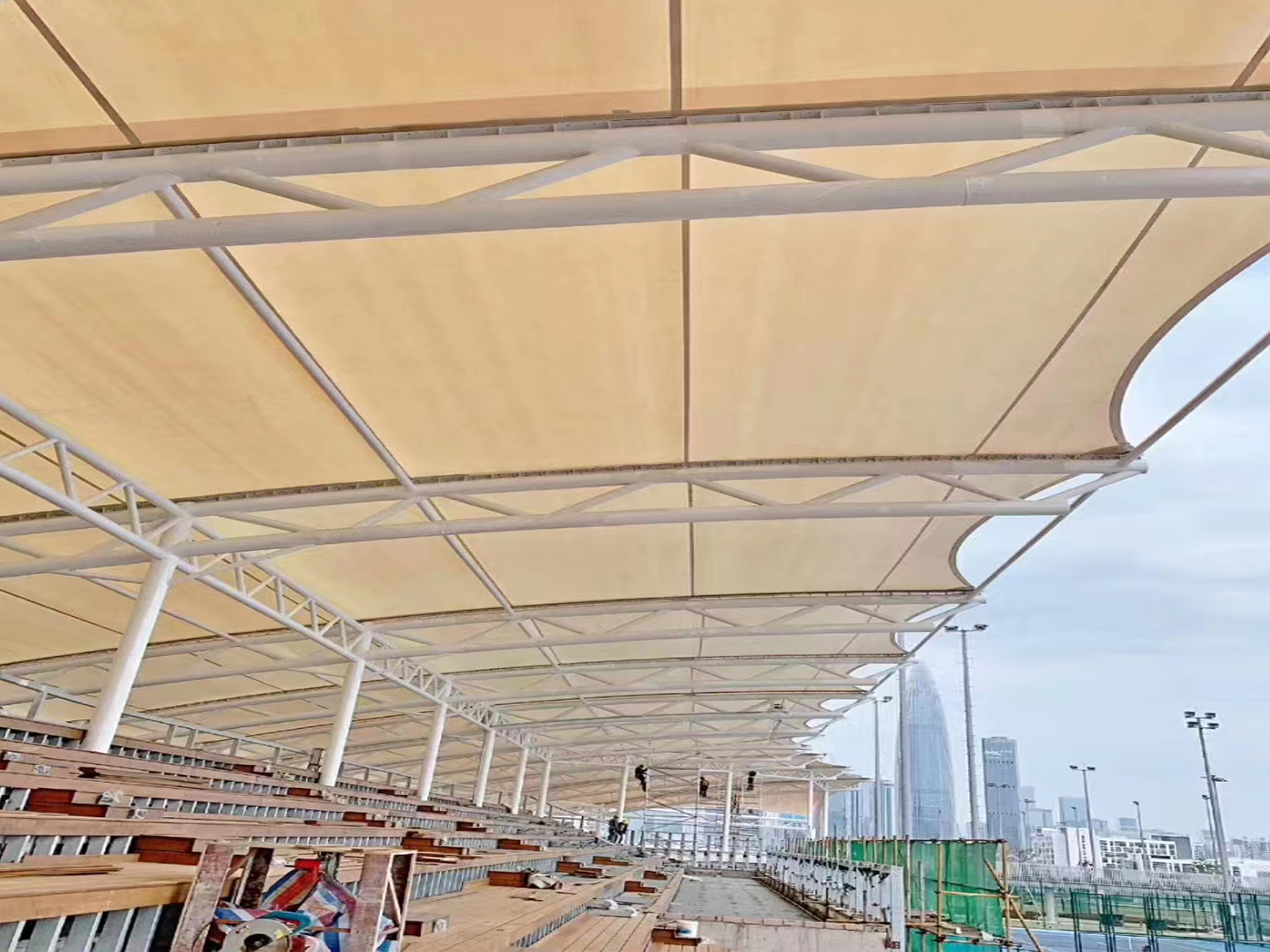 要注意膜材在不同受力情況的延展性,嚴(yán)禁過度張拉膜材。