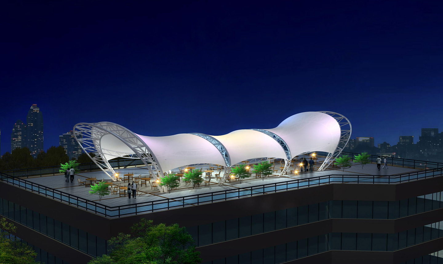膜結構由于其材料重量輕、支撐方式靈活的特點使其形狀變化多端,使設計者能夠充分發揮空間想象。大部分膜結構工程的造型是非常活潑漂亮的,膜結構工程不但打破了傳統建筑形式的沉悶,而且非常具有張力和雕塑感,能展現建筑形式的現代氣息,與傳統建筑的多線造型相比,膜結構工程建筑以其優美的曲線造型吸引人,與周邊建筑相輔相成的同時也讓人眼前一亮。特別是大型地標利用奇特的膜結構造型營造夢幻般的夜間景觀效果,增加其認知度和商業效果。
